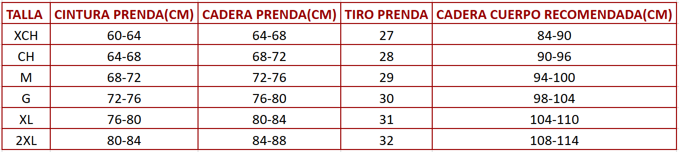 •Cadera recomendada: es la medida de tu cuerpo en la parte más ancha de las caderas.